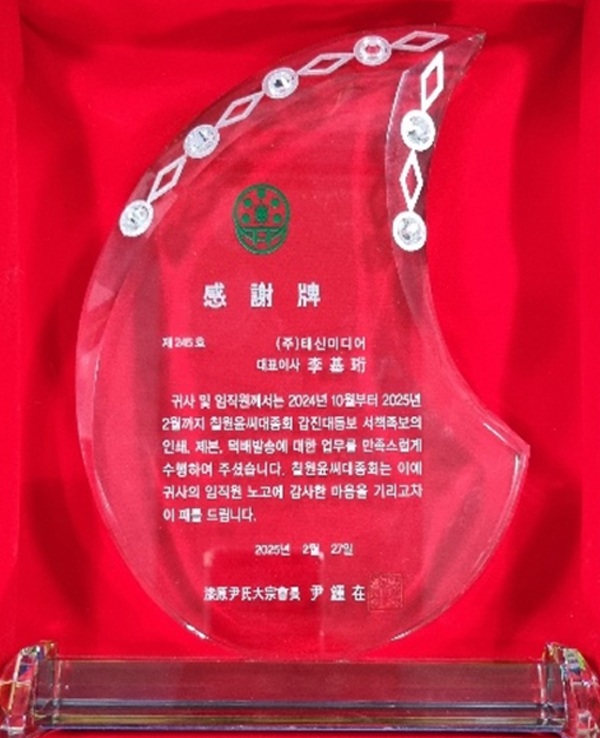 칠원윤씨대종회 감사패(2025.02)