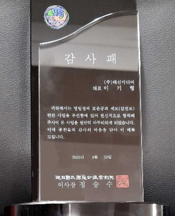 영일정씨포은공파 감사패(2025.09)