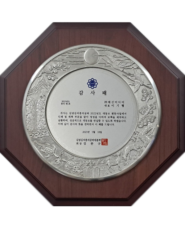 김녕김씨충의공 감사패(2023.05)