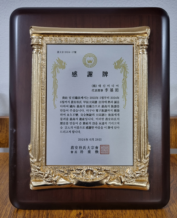 무안박씨대종회 감사패(2024.06)