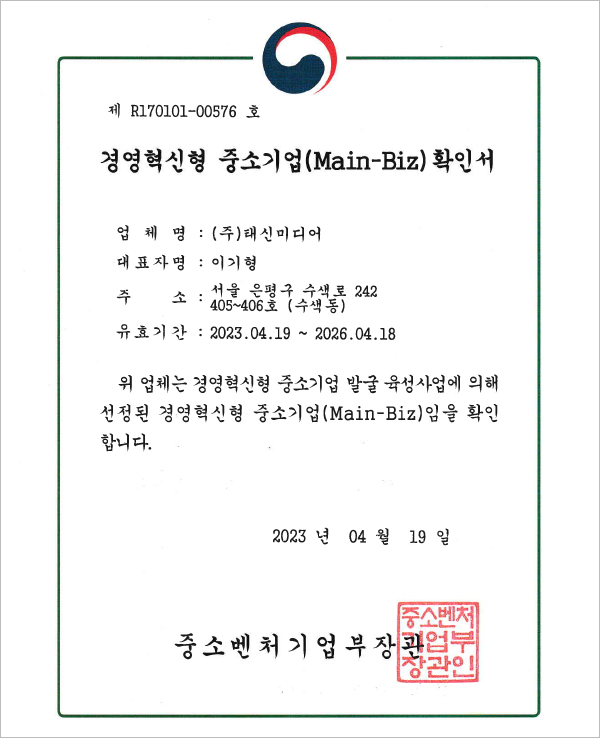 경영혁신형 중소기업 확인서