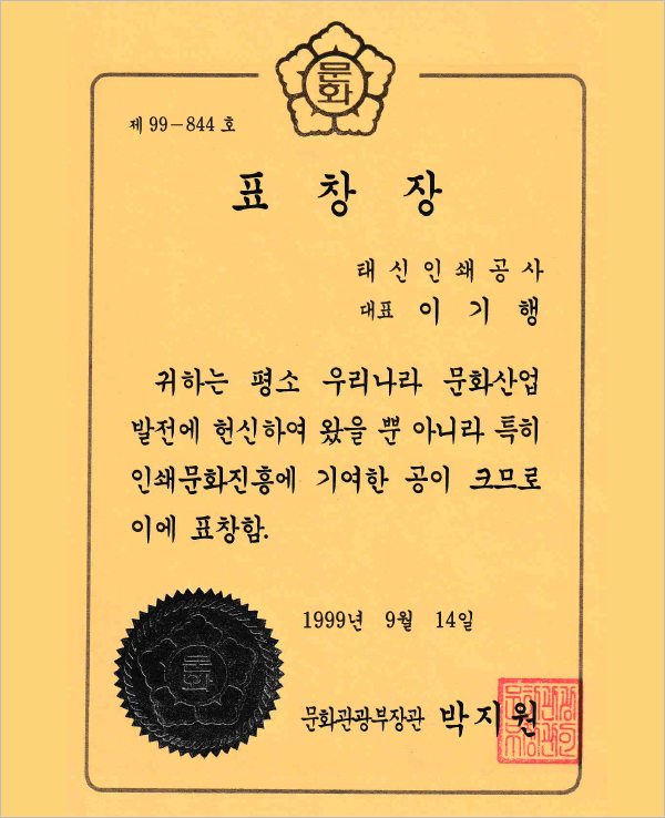 문화관광부장관 표창장