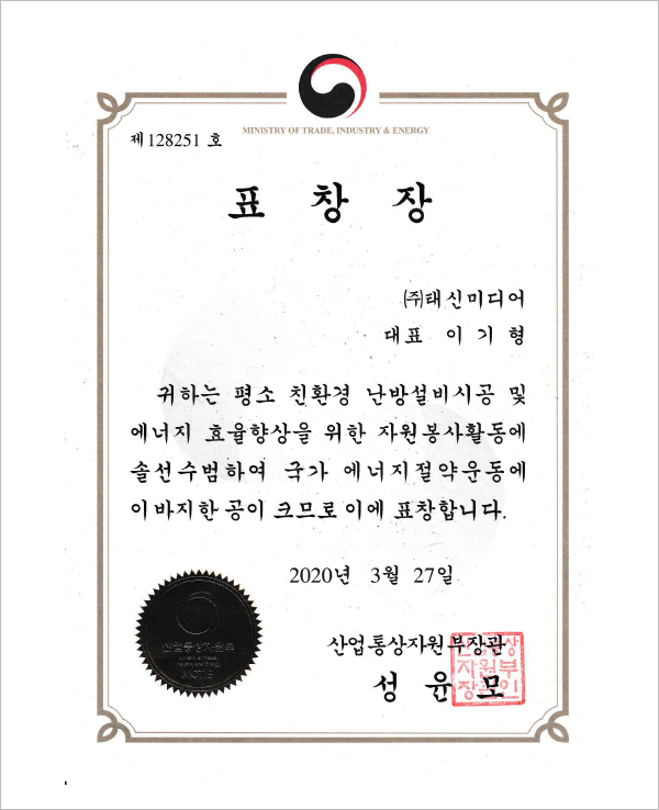 산업통상자원부장관 표창장