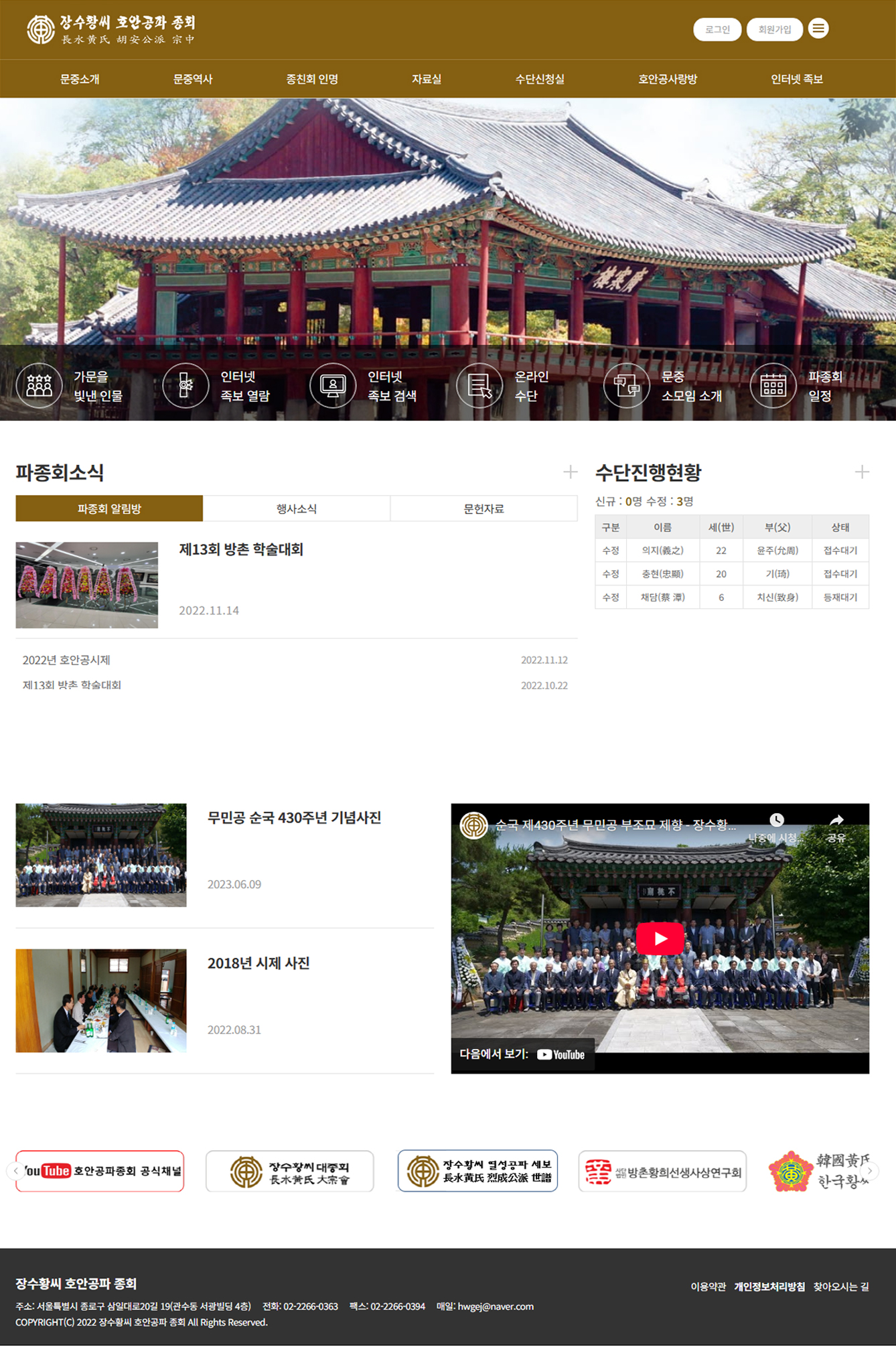 홈페이지 제작은 일반형, 게시형, 혼합형 등 문중에서 원하는 유형으로 제작해 드리며 현재 20여 문중의 홈페이지 유지관리 지원을 해 드리고 있습니다.